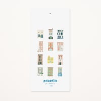14 sheets: Cover, 12 months, and back cover for notes. Closure ribbon made of printed vellum paper.