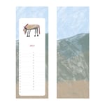 14 hojas: Portada, 12 meses y contraportada para anotaciones. Cinta de cierre de papel vegetal impreso.