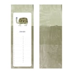 14 sheets: Cover, 12 months, and back cover for notes. Closure ribbon made of printed vellum paper.